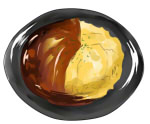 ふわふわとろとろたまごのオムライスに特製デミグラスソースをかけました。
