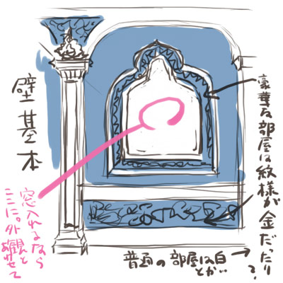 乃亜T型: 個人的には、 全体的に白の壁、細かい装飾、 ところどころに青のアクセント