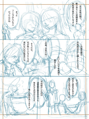 シナリオの那限さんに、2のラフを見て頂きながら相談(4の作業)をした結果、