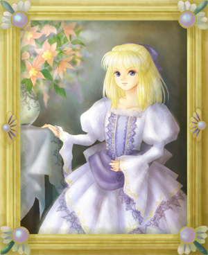 古風なドレスと、金髪の少女、東洋趣味な白磁の花器、と