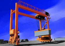 コンテナ等、貨物積み卸しを行うクレーン。