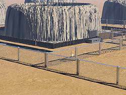 最も危険な施設であるため、周辺800m以内に保安施設以外の建物はない。