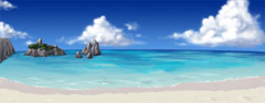 おねえさん「夏といえばやっぱり泳ぐに限るよね!今、水着に着替えてホテルの前のビーチにやってきました。目の前に広がる一面の青がとっても魅力的!!素敵よね〜、来て良かったわ!」